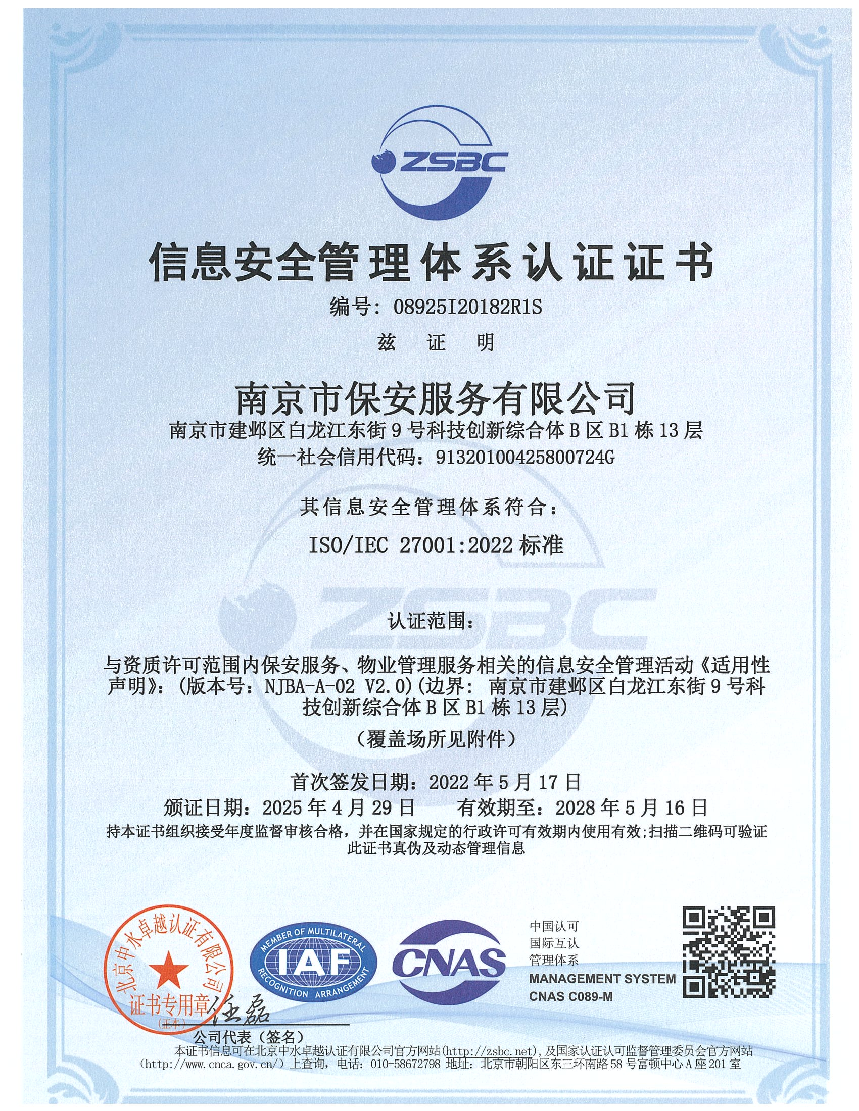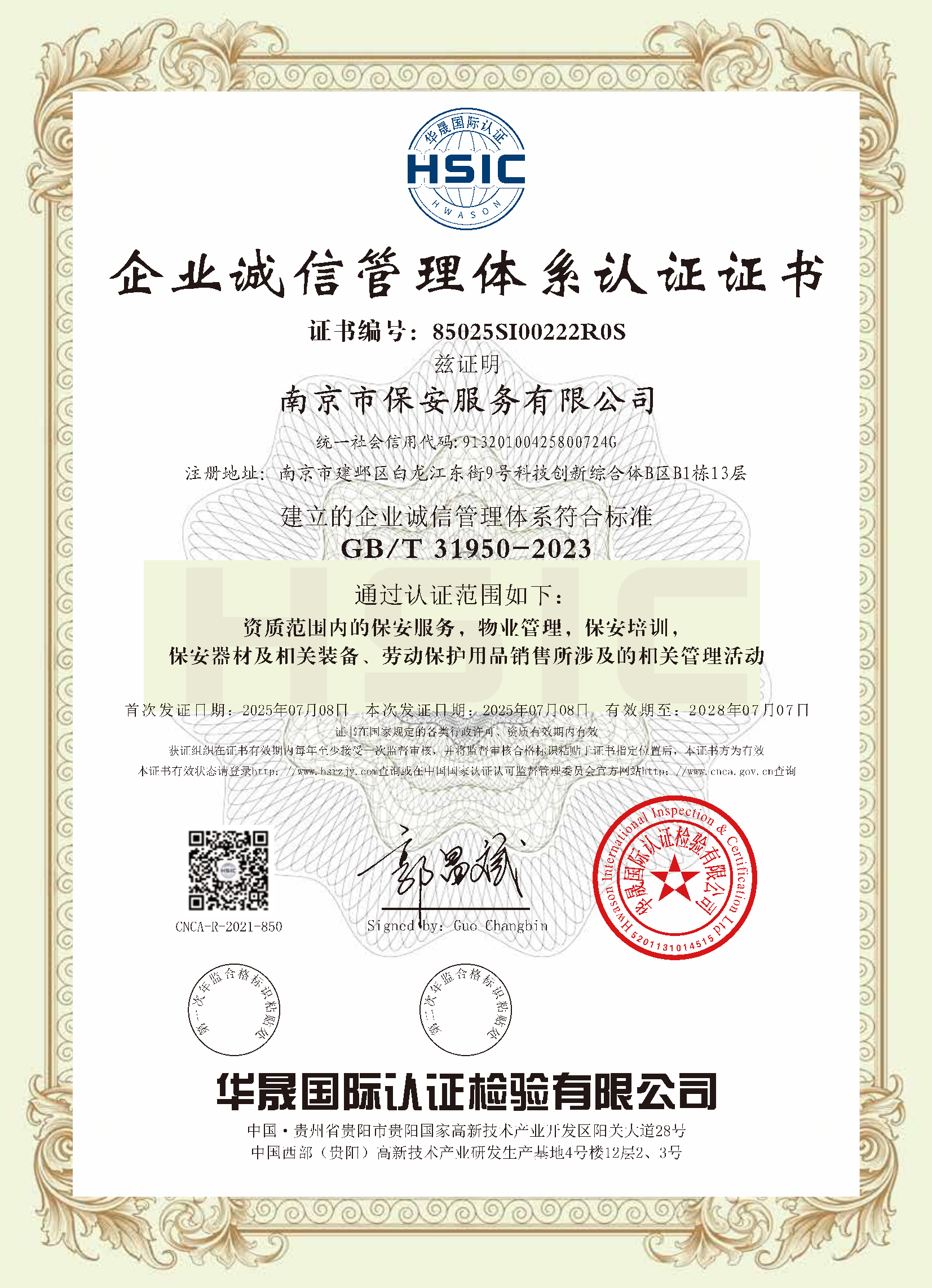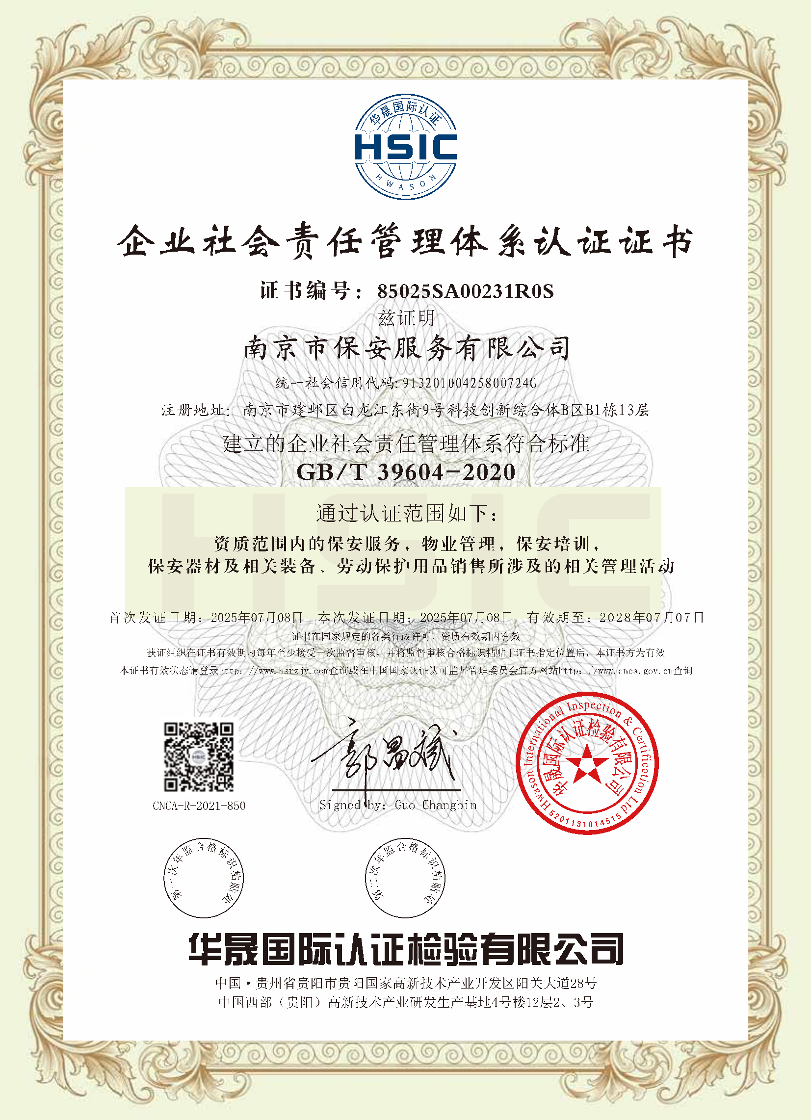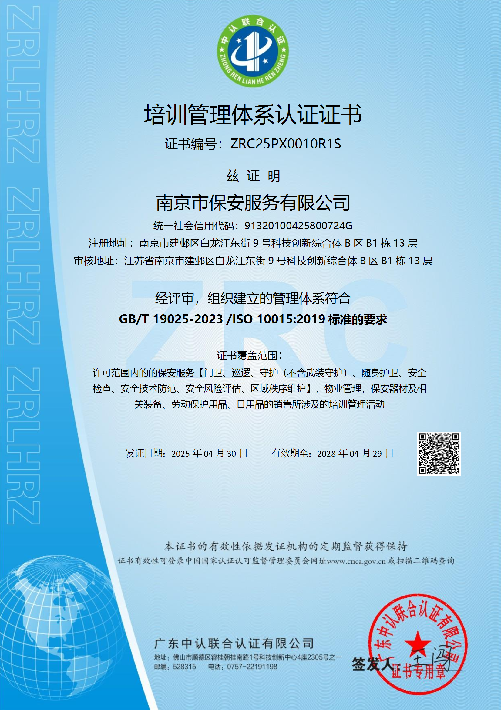 祝賀:南京市保安服務(wù)總公司通過企業(yè)誠(chéng)信管理體系認(rèn)證和企業(yè)社會(huì)責(zé)任管理體系認(rèn)證